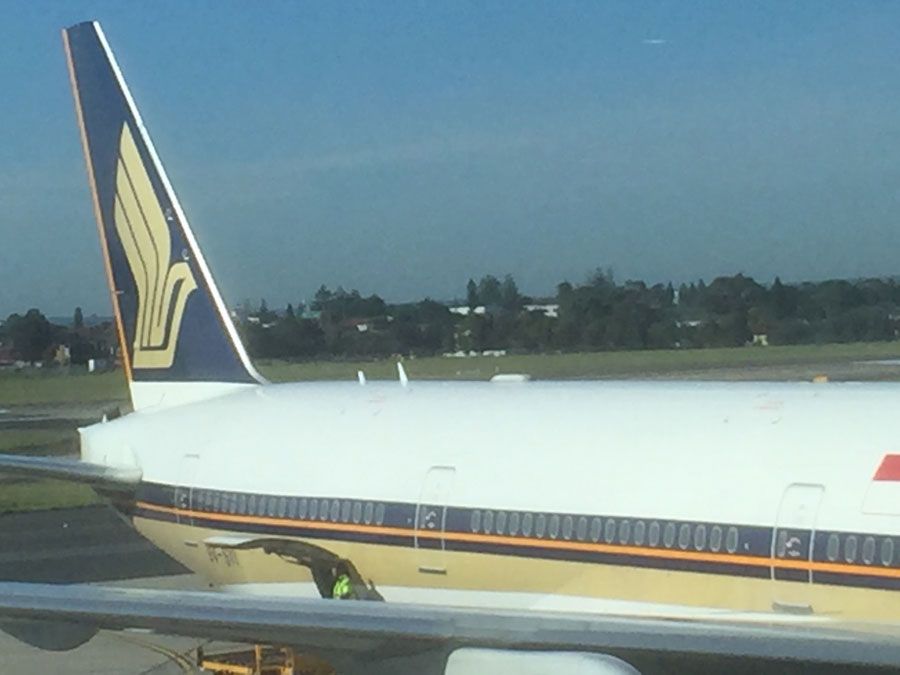 We flew over central australia across Lake Eyre and then out over Port Headland, then across the water past Indonesia into Singapore. The flight was delayed at Sydney when a passenger had too much cabin luggage, refused to check it in and decided not to fly at all, so all of her bags had to be removed. We made up time and arrived as scheduled just over 8 hours of flying.