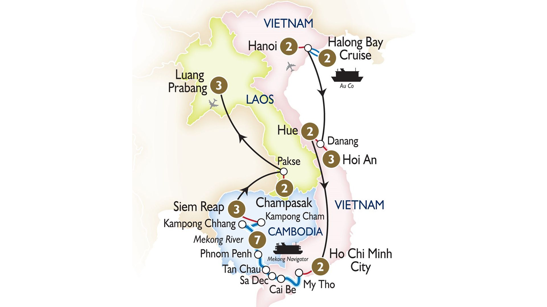 We travel through the picturesque Marble Mountains via the breathtaking Hai Van Pass to Hue, the former capital. En-route we enjoy a visit to the open air Cham Museum, relive the grandeur of Hue's Imperial Citadel and enjoy a traditional dance performance accompanied with traditional court music in the Royal Ancient Theatre. We then take a cruise down the Perfume River to Thien Mu Pagoda.